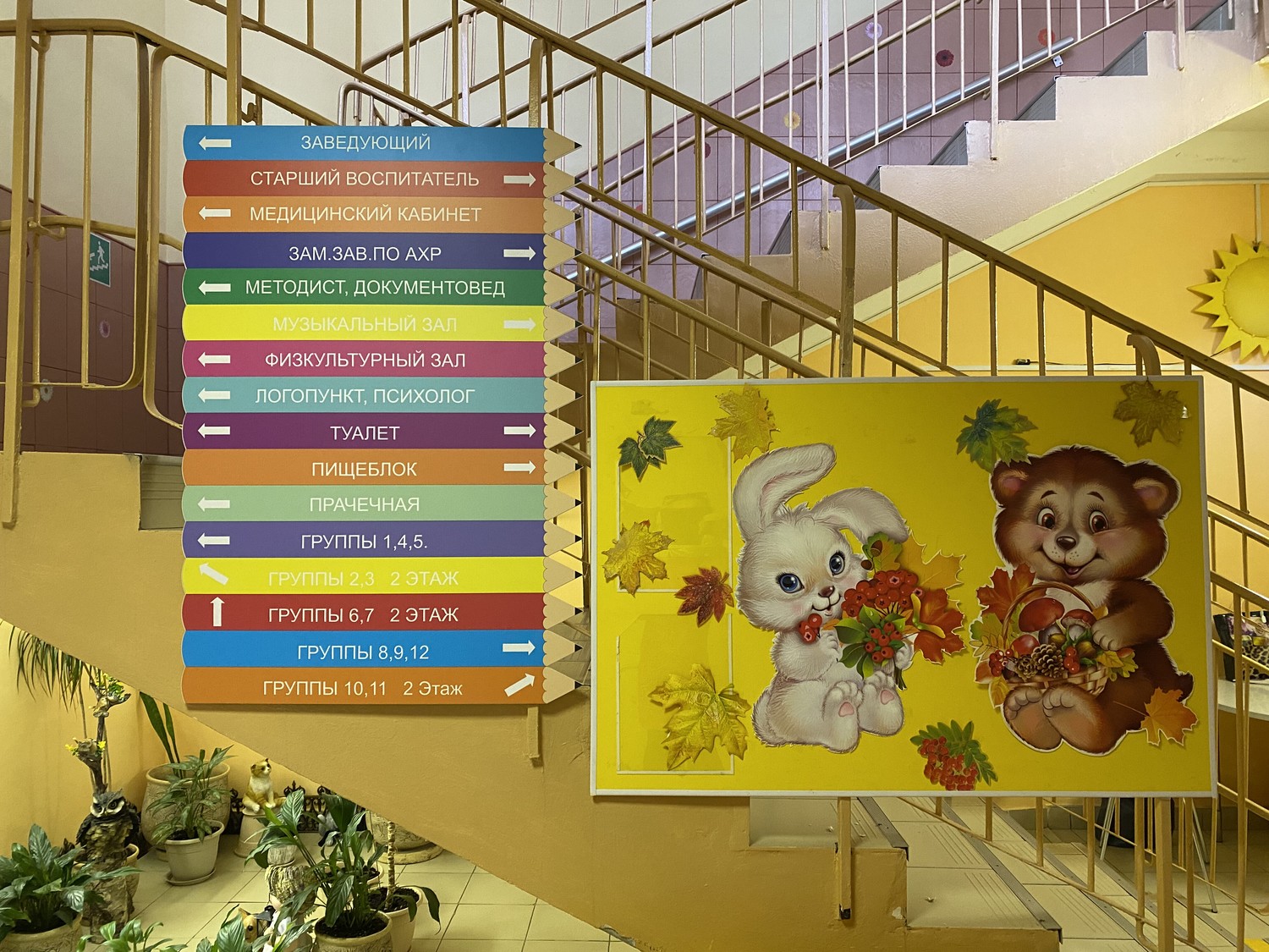 Когда мы изготавливаем навигацию для детских учреждений, то главное, на что обращаем внимание — это безопасность элементов и комфорт их восприятия.