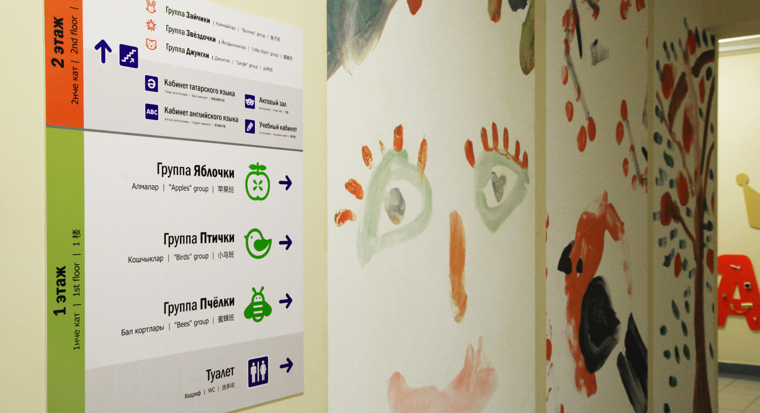 Чтобы по элементам можно было легко ориентироваться, мы учитываем возрастные особенности детей в каждом конкретном учреждении. Для детских садов нужен минимум текста, яркие изображения, контрастные цвета. Для младших школьников необходимы простые подписи и дублирование символами. В навигации для школы, где учатся подростки, допустимы более сложные схемы, но с сохранением наглядности.