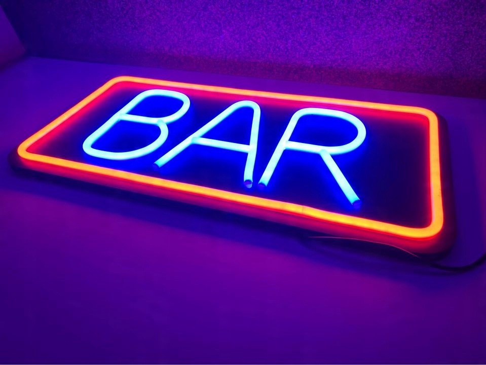Заказчик — бар — обратились к нам для изготовления неоновой вывески, которая бы соответствовала имиджу бренда. Основные требования при исполнении проекта:
