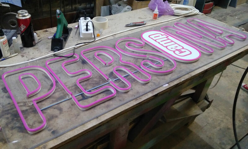 Технология изготовления включает несколько этапов. Сначала создаётся шаблон будущей вывески, затем гибкий неон нарезается и сгибается в соответствии с дизайном. После этого трубка герметизируется, чтобы предотвратить утечку газа, и подключается к источнику питания. Для защиты и эстетики неоновая трубка может быть дополнительно покрыта прозрачным пластиком или стеклом.