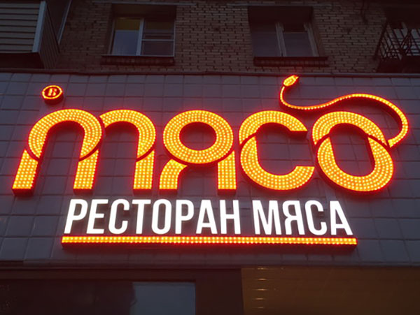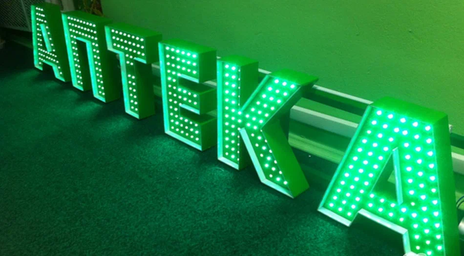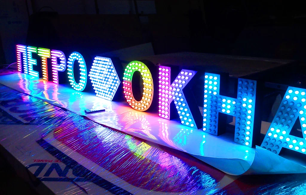 Материалы. Фронтальную, торцевые и заднюю части обычно изготавливают из ПВХ и оклеивают виниловой пленкой. Пластик стоит недорого, но надежен в эксплуатации: устойчив к перепадам температур, осадкам, солнечному свету, его легко очищать и мыть. Что касается подсветки, что чем больше пикселей вставляют в корпус, тем дороже буква. Стоимость зависит и от качества светодиодов, и от наличия контроллеров.