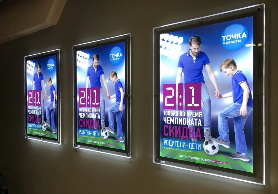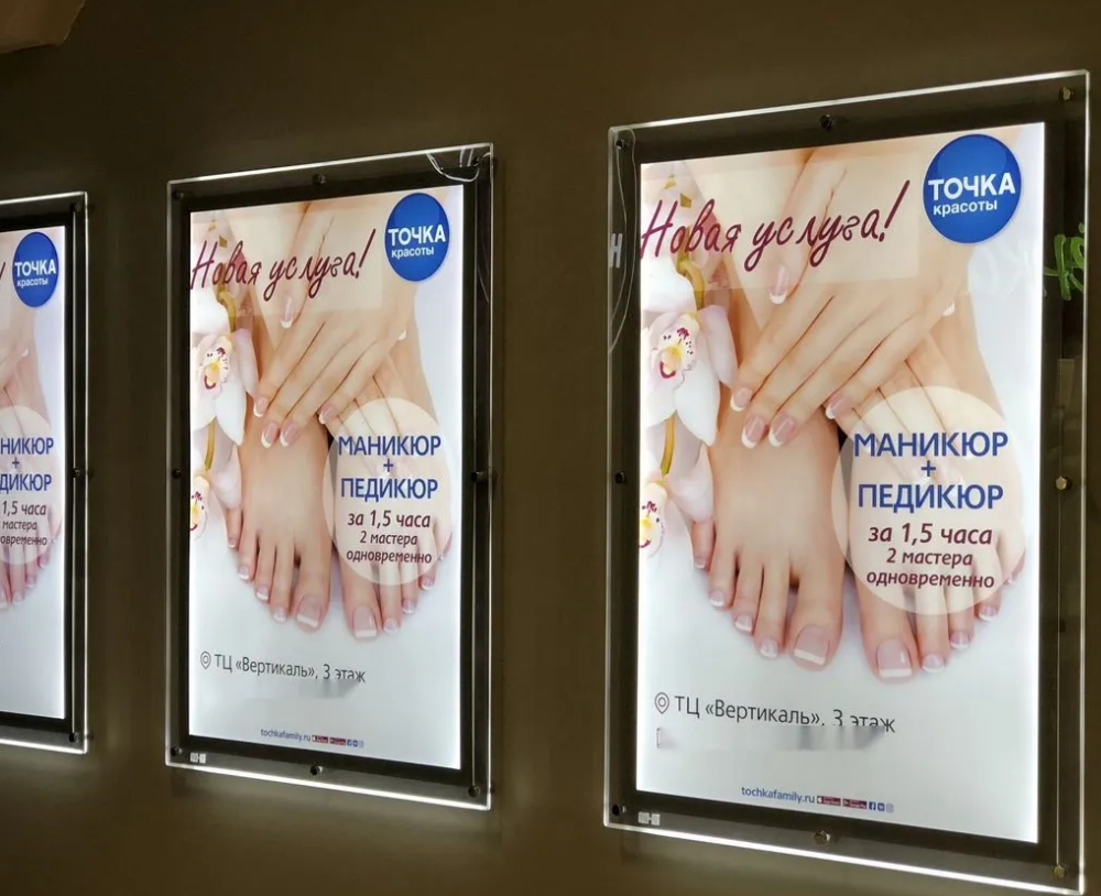 Наши ультратонкие панели идеально адаптируются к любым пространствам – от элитных бутиков и бизнес-центров до современных выставочных площадок, сохраняя свою эффективность и в уличной рекламе. Каждый кристалайт создается по индивидуальным параметрам: мы воплощаем как строгие корпоративные решения, так и смелые авторские замыслы.