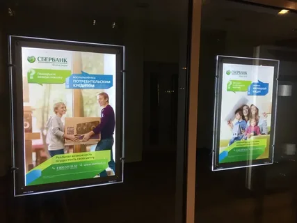 В отделениях банков crystalight часто устанавливают в оконных проемах, чтобы привлекать внимание клиентов к спецпредложениям по кредитам, вкладам или картам. Из-за равномерной подсветки и высокой четкости изображения информация легко читается даже с большого расстояния.